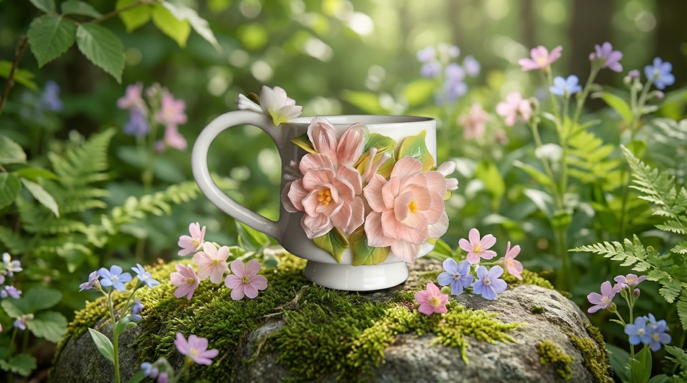 Handcrafted Bunny & Blossoms 3D Floral Ceramic Mug